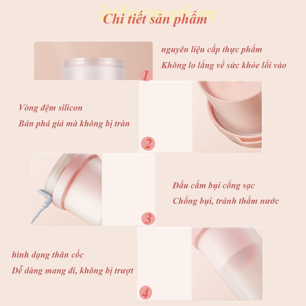 - Máy xay cầm tay sử dụng pin tích điện cáp sạc USB, sạc bất cứ mọi nơi