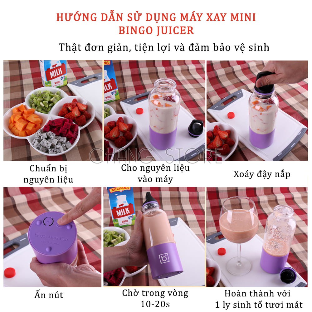 Giới thiệu Máy Xay Sinh Tố Cầm Tay Mini Pin Sạc 4 Lưỡi BINGO JUICER CUP 500Ml