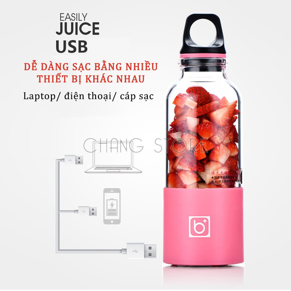 Máy Xay Sinh Tố Cầm Tay Mini Pin Sạc 4 Lưỡi BINGO JUICER CUP 500Ml