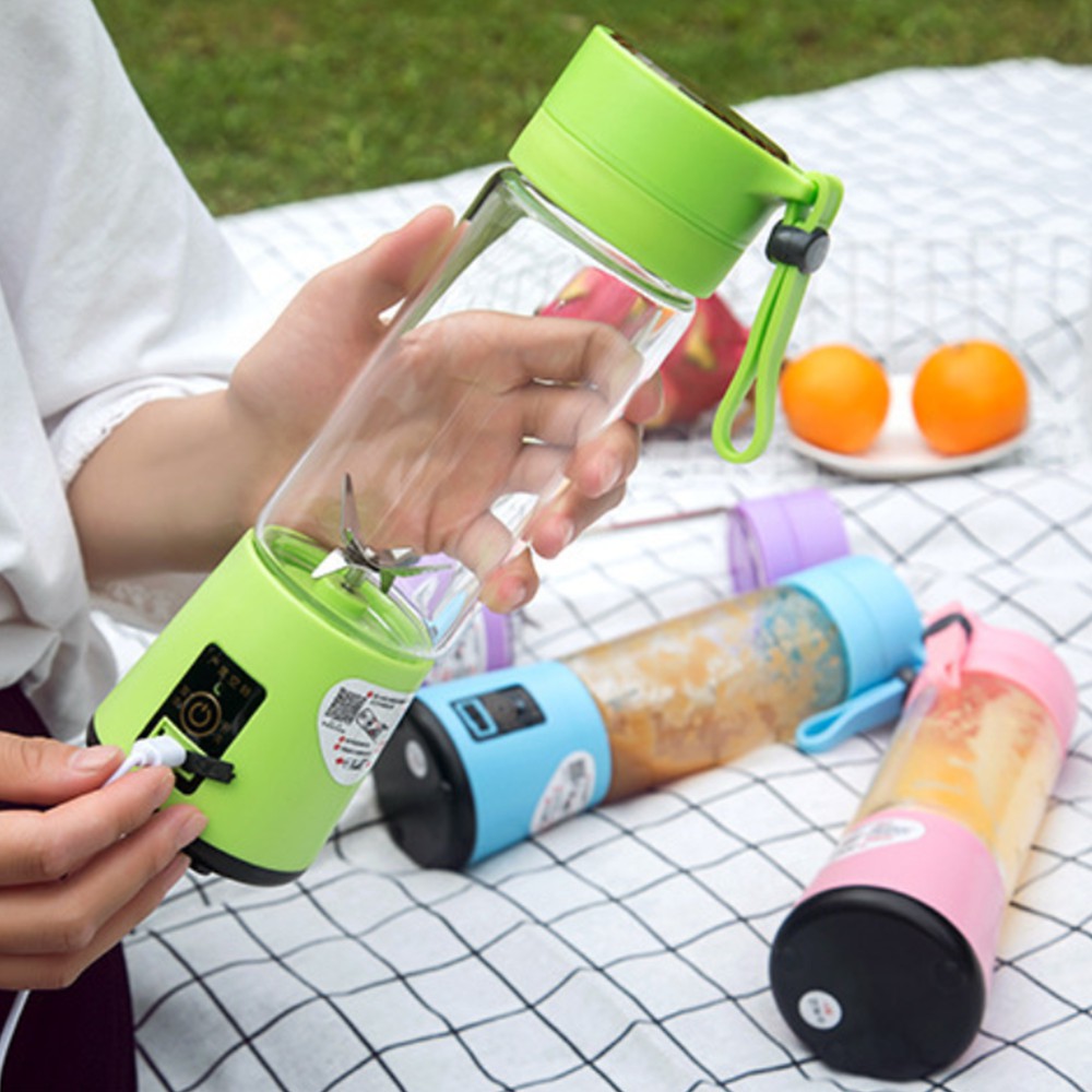- Máy được thiết kế nhỏ, gọn sạc pin bằng USB rất tiện lợi, dù ở bất cứ nơi đâu bạn cũng vẫn có thể tự làm cho mình những ly sinh tố trái cây tươi ngon, xay xong bạn có thể đậy nắp bình lại và xách theo