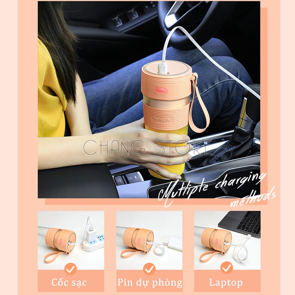 Máy xay sinh tố cầm tay mini dung tích 300ml hàng nhập khẩu sạc pin chất liệu nhựa ABS