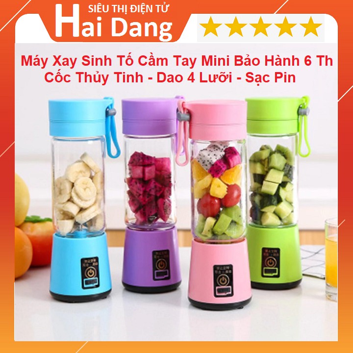 Giới thiệu Máy Xay Sinh Tố Cầm Tay Mini, Cốc Xay Đựng Nước Ép Hoa Quả, Cốc Thủy Tinh Dao 4 Lưỡi, Sạc Pin - Bảo Hành 6 Tháng