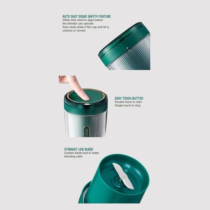 - Nhỏ gọn như bình nước cá nhân nhưng có thể xay nhuyễn từ trái cây, đá viên nhỏ, rau, củ,...