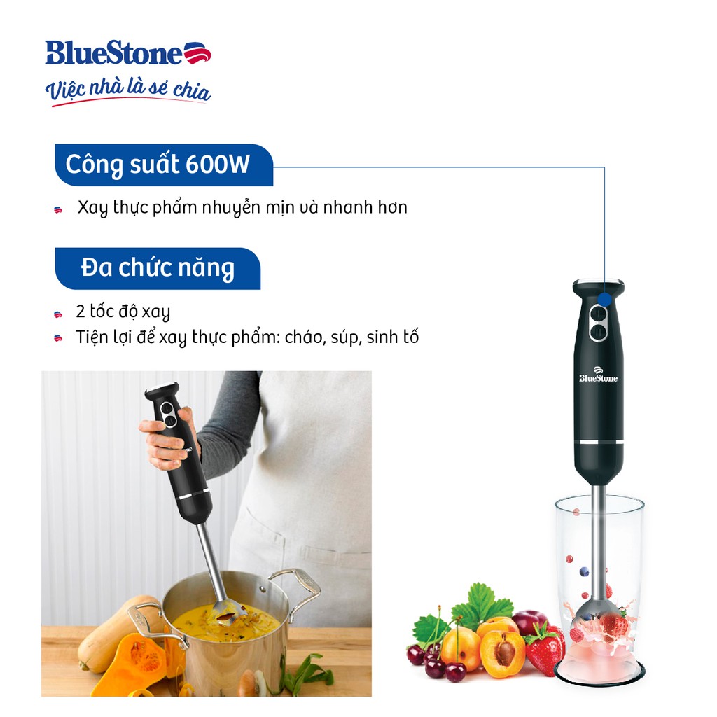 [Mã ELHAMS5 giảm 6% đơn 300K] Máy xay sinh tố cầm tay BlueStone BLB-5216 - Công Suất 600w, Bảo hành 24 tháng