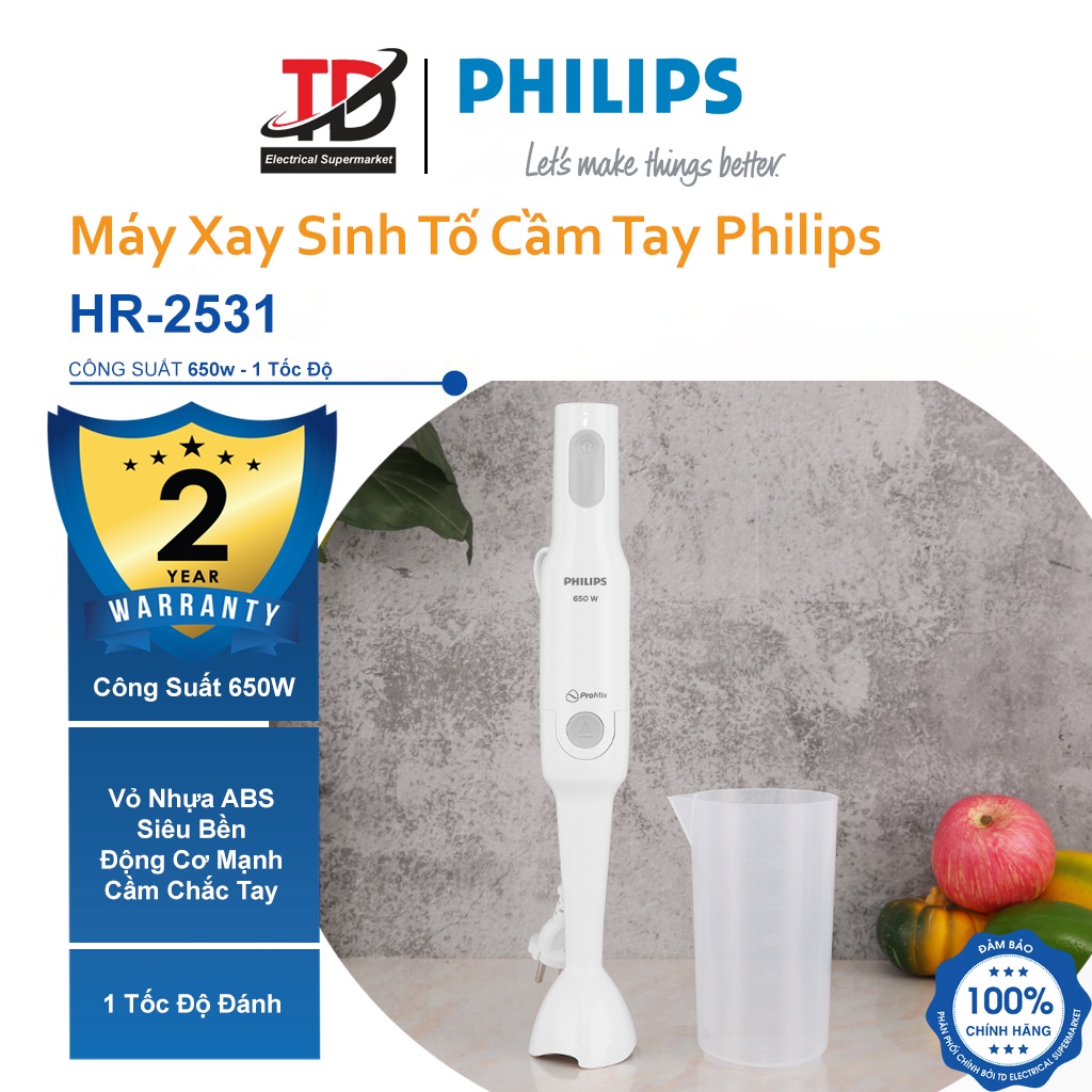 Thiết Bị Điện Gia Dụng > Đồ gia dụng nhà bếp > Máy ép, Xay sinh tố & Máy làm sữa đậu nành || Máy Xay Sinh Tố Cầm Tay Philips HR2531 - Công Nghệ Xay Promix 650W - Bảo Hành Chính Hãng 2 NămCòn hàng