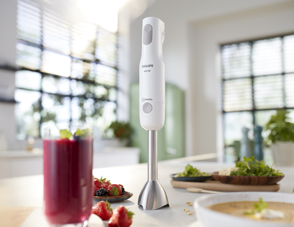 Công nghệ xay tiên tiến ProMix xay nhanh, đặc thực phẩm hơn Tháo lắp dễ dàng, đơn giản chỉ với một nút nhấn trên thân máy Máy xay sinh tố cầm tay trọng lượng nhẹ, tay cầm chắc chắn Đầu bảo vệ lưỡi dao có dạng gợn sóng chống văng khi trộn Công suất 650W hoạt động mạnh mẽ đem lại hiệu suất cao
