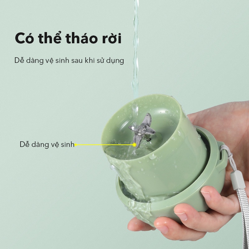 - Máy xay có kèm dây đeo, giúp bạn có thể mang đi khắp mọi nơi để sử dụng mọi lúc.