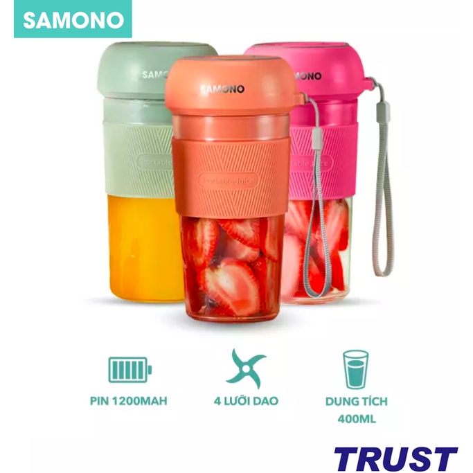 MÁY XAY SINH TỐ MINI CẦM TAY SAMONO SW-Y8 - DUNG TÍCH 400ML - THIẾT KẾ NHỎ GỌN - MÀU SẮC TRẺ TRUNG THỜI THƯỢNG• Sản phẩm chính hãng thương hiệu SAMONO