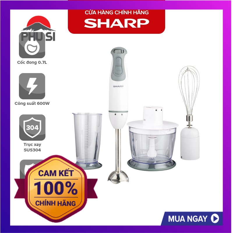 Thiết Bị Điện Gia Dụng > Đồ gia dụng nhà bếp > Máy ép, Xay sinh tố & Máy làm sữa đậu nành || [Mã 273ELHA100K0 hoàn 7% đơn 500K] ⊕Máy Xay Sinh Tố Cầm Tay Sharp EM-H076SV-WH 0.7LCòn hàng