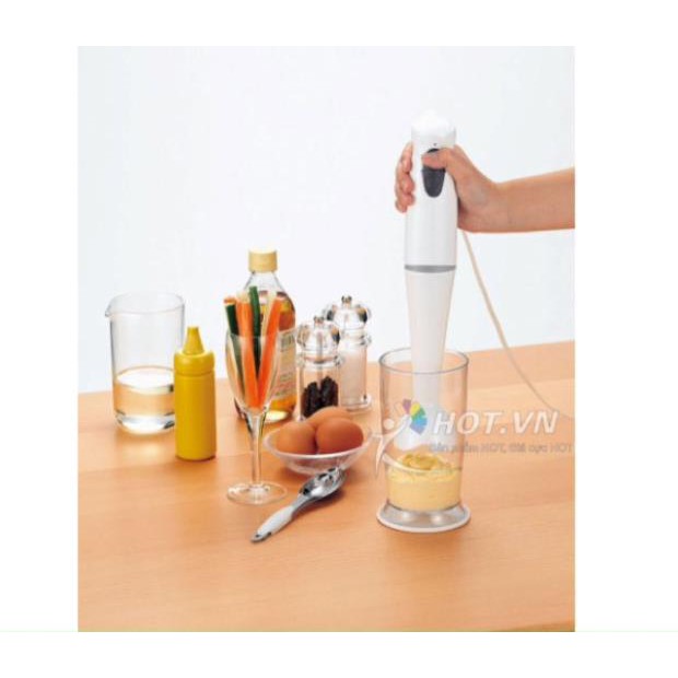 + Ưu điểm gọn nhẹ hơn máy xay sinh tố kiểu cũ,có thể xay ngay trong nồi, trong bát (tô) hoặc cốc (ly) đựng không cần san qua sớt lại nhiều lần