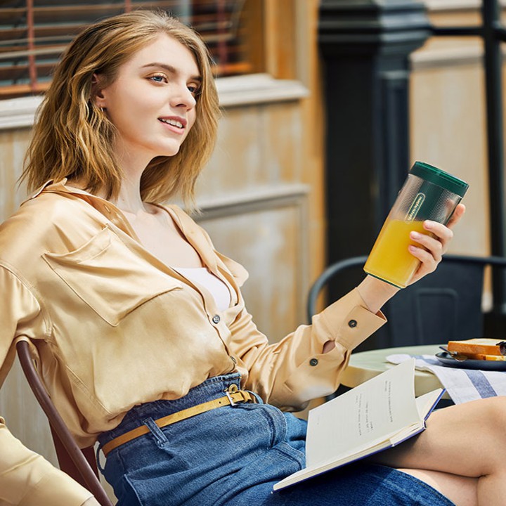 - Nhỏ gọn như bình nước cá nhân nhưng có thể xay nhuyễn từ trái cây, đá viên nhỏ, rau, củ,...