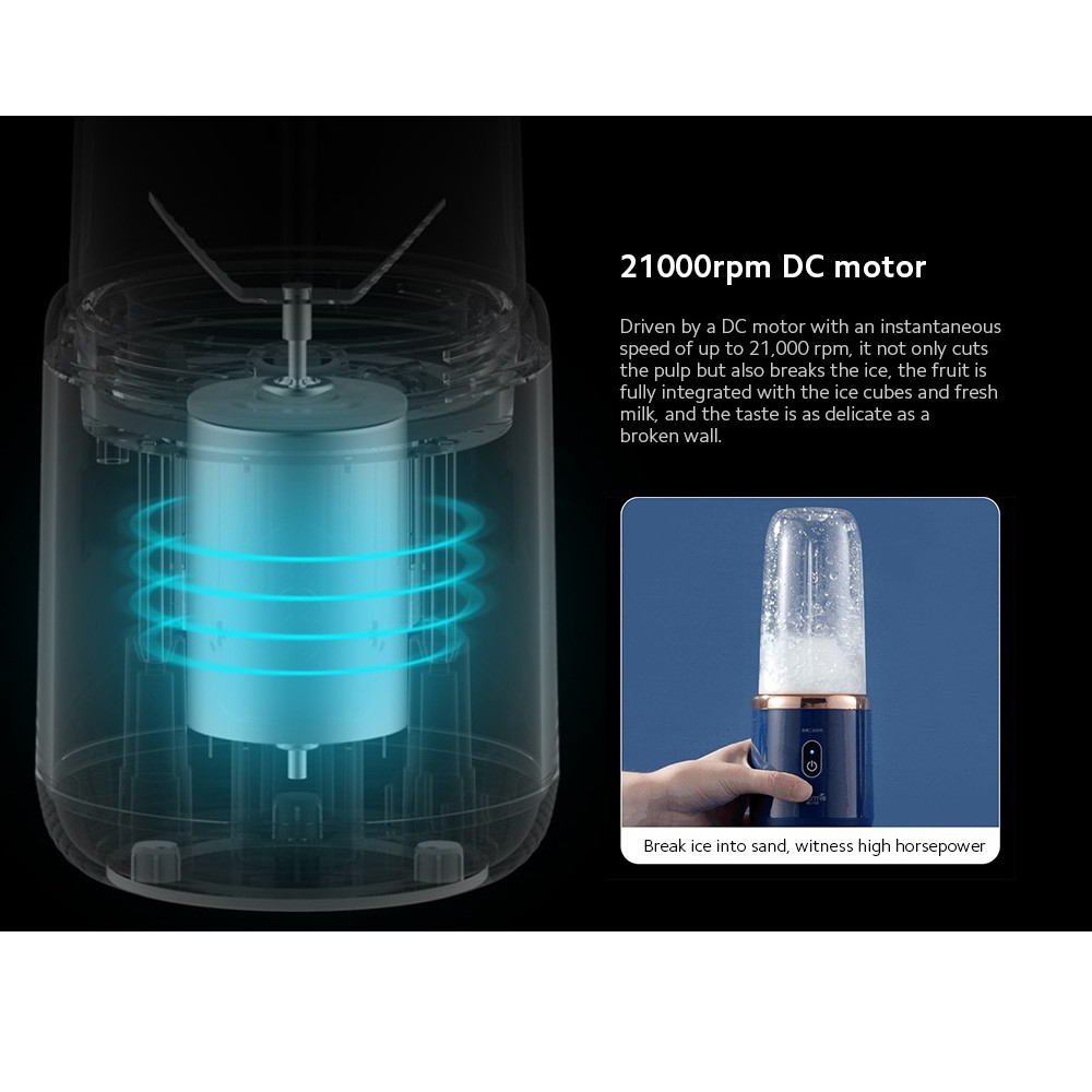 MÁY XAY SINH TỐ THÔNG MINH XIAOMI DEERMA• Cốc xay trái cây có thể sạc lại. Được trang bị pin 1500mAh, bạn có thể sạc lại trên ô tô, máy tính và các thiết bị USB khác.