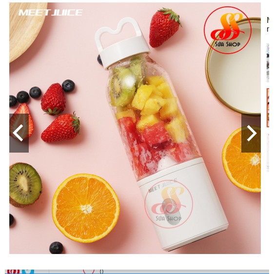 Máy Xay Sinh Tố Mini Cầm TayMáy xay sinh tố mini M EET J UICE được thiết kế với 4 lưỡi dao làm bằng inox 304 không gỉ cùng với tốc độ quay mạnh 22000 vòng/ phút giúp bạn dễ dàng làm một cốc sinh tố chỉ trong 9s