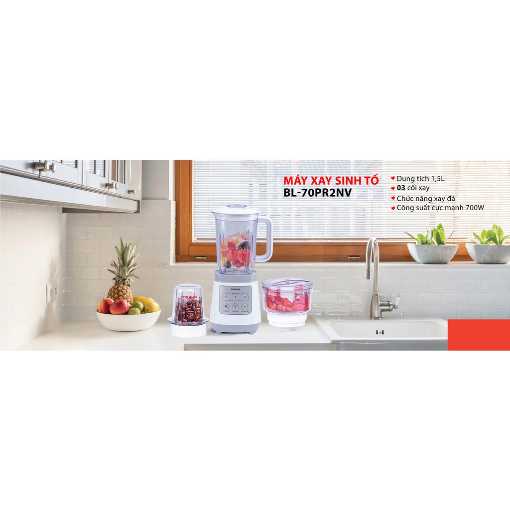 Thiết Bị Điện Gia Dụng > Đồ gia dụng nhà bếp > Máy ép, Xay sinh tố & Máy làm sữa đậu nành || [Mã ELHA22 giảm 6% đơn 300K] Máy xay sinh tố có xay đá Toshiba 1.5 lít BL-70PR1NVCòn hàng