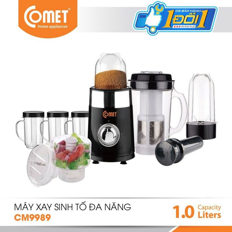 Máy xay sinh tố đa năng Comet là dòng máy xay đa năng cao cấp của Comet. Máy xay sinh tố đa năng Comet CM9989 được biết đến như sản phẩm đa năng, là trợ thủ đắc lực của các chị em phụ nữ hiện nay bởi khả năng xay ép trái cây, sinh tố, xay nghiền thịt hoặc cá, các thực phẩm tươi sống hoặc băm nghiền các loại gia vị, thảo mộc vô cùng hiệu quả.