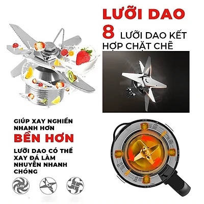 -Bộ dao 8 lưỡi thép không gỉ chuyên dụng đa chức năng Phát triển theo hướng xay đa chức năng trong cùng một sản phẩm, máy xay sinh tố công nghiệp sử dụng bộ dao gồm 8 lưỡi bao gồm: Lưỡi dao răng cưa, lưỡi dao sắc. Bộ lưỡi dao này có thể xay được tất cả các thực phẩm từ thịt cá, rau củ, các loại hạt ngủ cốc cứng cho đến sinh tố, đá lạnh mà không gặp phải bất kỳ vấn đề nào Lưỡi dao sử dụng chất liệu inox 304 chuyên dụng siêu cứng, rất khó bị mài mòn bởi thực phẩm, cho dù những vật cứng như chén sứ khi xay cũng không để lại vết sứt mẻ nào trên lưỡi dao