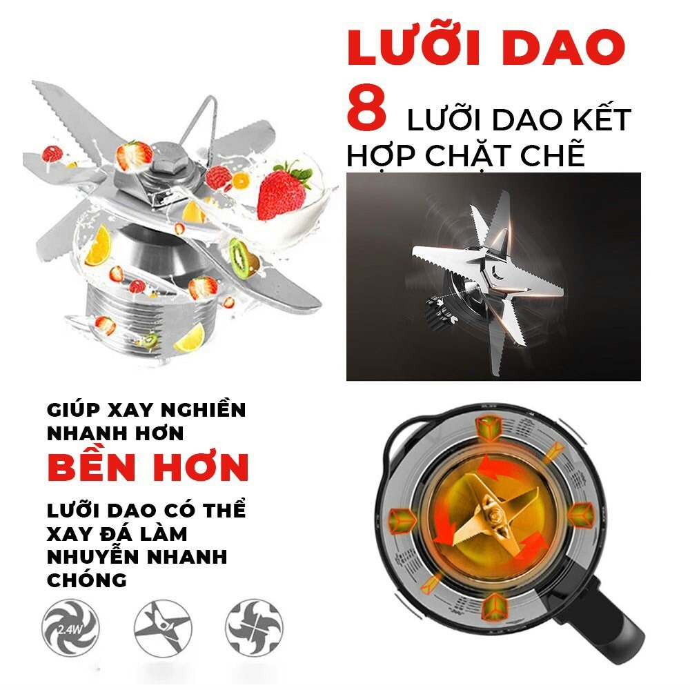 Lưỡi dao: 8 lưỡi, Inox 304, bánh răng hợp kim