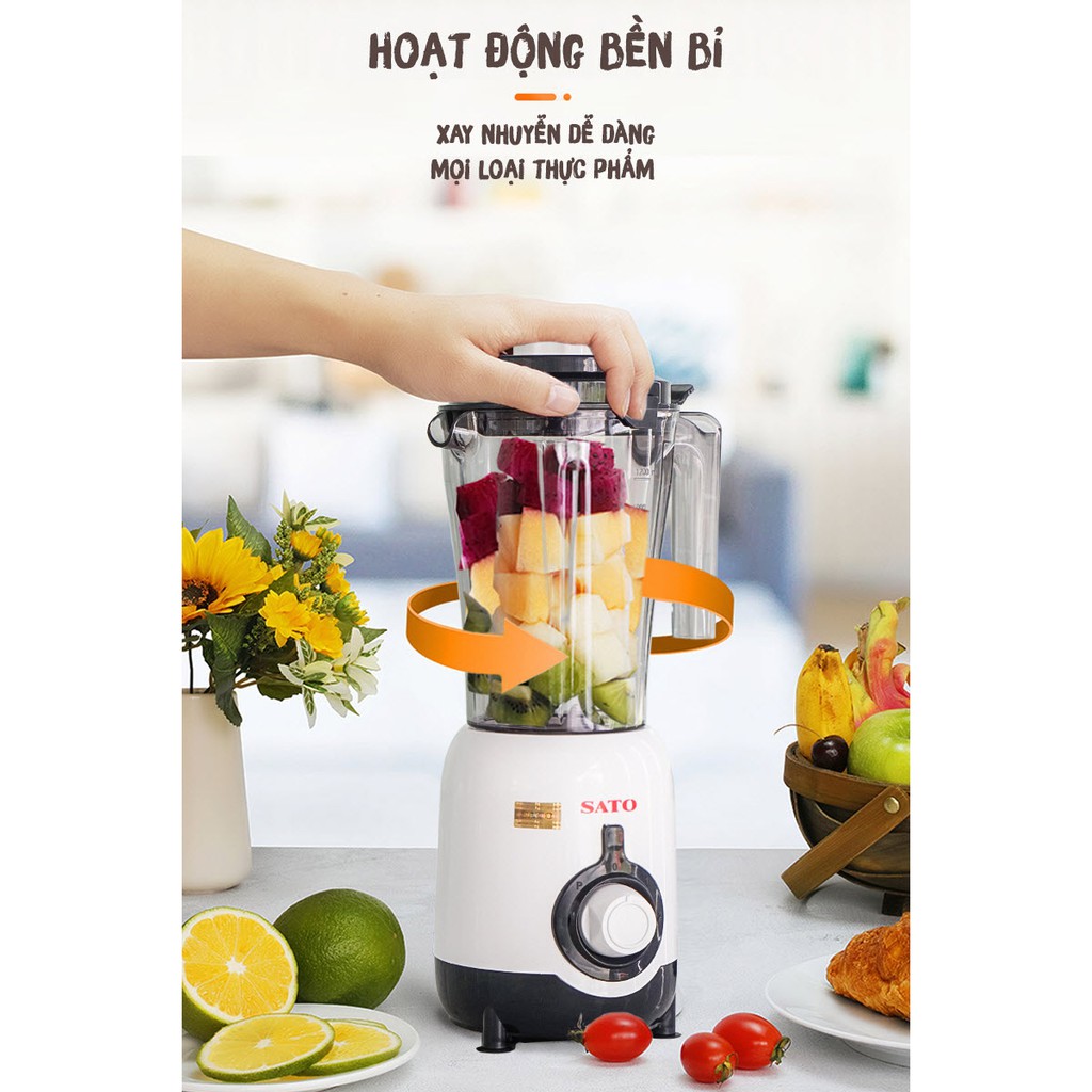 Giới thiệu [Mã ELHA22 giảm 6% đơn 300K] Máy xay sinh tố đa năng 2 cối Việt Nhật SATO MX8205A {BẢO HÀNH 36 THÁNG}, siêu bền