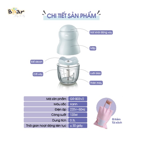 Giới thiệu [Mã ELHA22 giảm 6% đơn 300K] Máy xay sinh tố đa năng Bear GR-B03V2 - blue