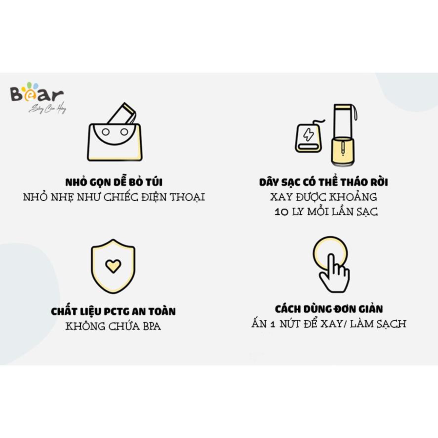 Máy xay sinh tố đa năng Bear LLJ-D04L1 dung tích 350ml tích hợp pin sạch điện lưỡi dao innox 304 sắc bén - Hàng Quốc Tế
