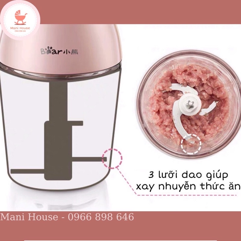 * Máy xay Sinh Tố đa năng cao cấp Bear Loại 0,6 Lít Cho Bé Ăn- Thiết kế thông minh với 3 lưỡi dao, lực xoay mạnh, dễ dàng xay nhuyễn thức ăn, chuẩn bị đồ ăn cho bé ăn dặm. Có thể xay được các loại thịt, rau củ quả, gia vị hoặc làm sinh tố cho bé