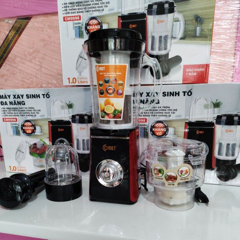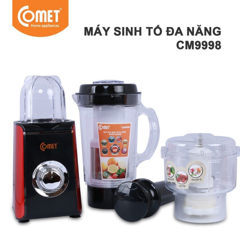 - Máy xay sinh tố đa năng Comet là dòng máy xay đa năng cao cấp của Comet. Máy xay sinh tố đa năng Comet CM9998 được biết đến như sản phẩm đa năng, là trợ thủ đắc lực của các chị em phụ nữ hiện nay bởi khả năng xay ép trái cây, sinh tố, xay nghiền thịt hoặc cá, các thực phẩm tươi sống hoặc băm nghiền các loại gia vị, thảo mộc vô cùng hiệu quả