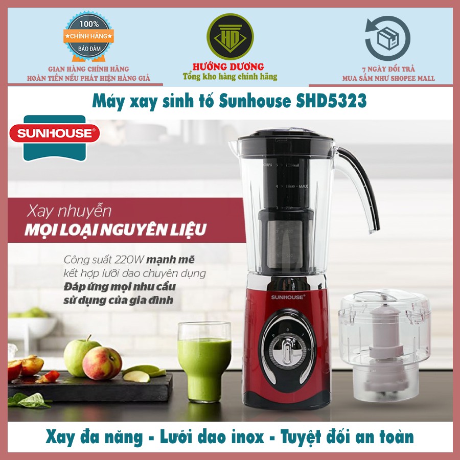 - Máy xay sinh tố Sunhouse SHD 5323 với nhiều tính năng nổi bật, thương hiệu uy tín sẽ là trợ thủ đắc lực trong căn bếp nhà bạn.