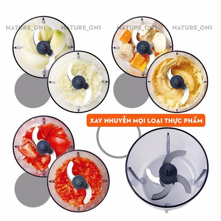❶ Gồm 3 phần chính, 1 motor với 2 cấp độ xay, 1 cối chứa thịt xay bằng nhựa, 2 lưỡi dao tác động kép.