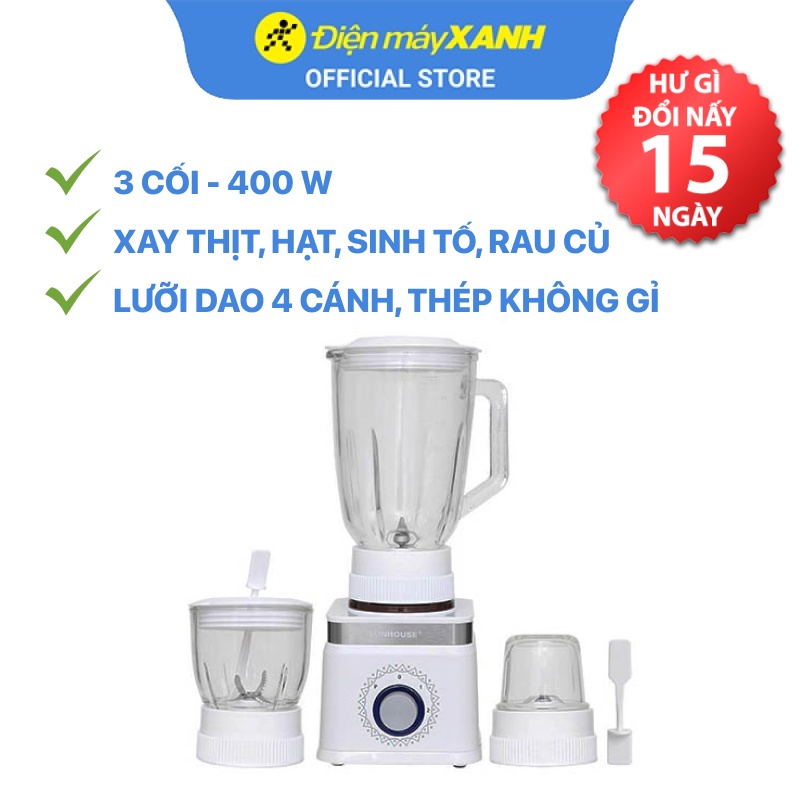 Thiết Bị Điện Gia Dụng > Đồ gia dụng nhà bếp > Máy ép, Xay sinh tố & Máy làm sữa đậu nành || Máy xay sinh tố đa năng Sunhouse SHD5582W 1.5 lít 400W xay thịt, hạt, sinh tố, rau củ - Chính hãng BH 12 thángCòn hàng