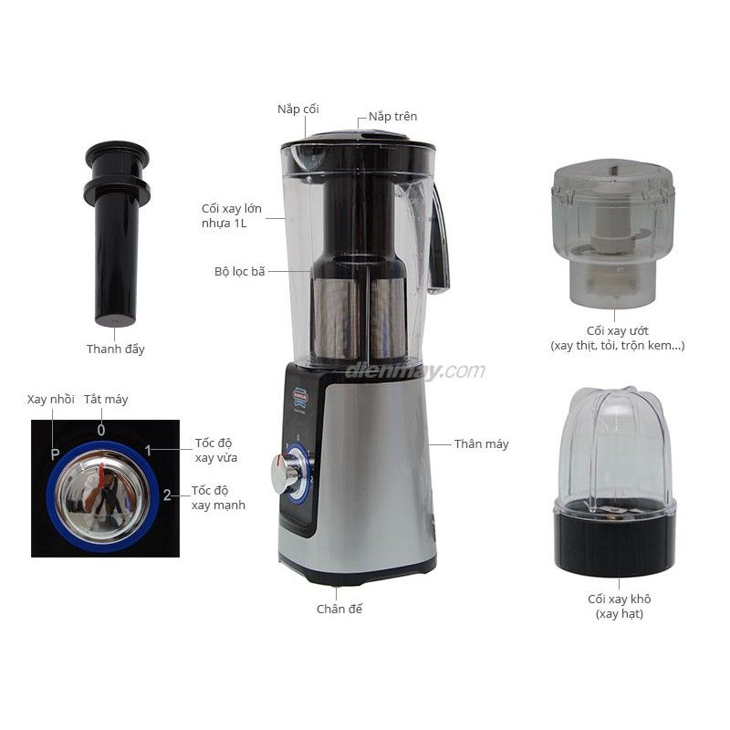 ** Chức năng: Xay hoa quả, sinh tố + xay thịt, cá, tôm + xay thực phẩm khô