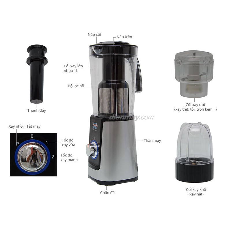 Chức năng Xay hoa quả, sinh tố + xay thịt, cá, tôm + xay thực phẩm khô