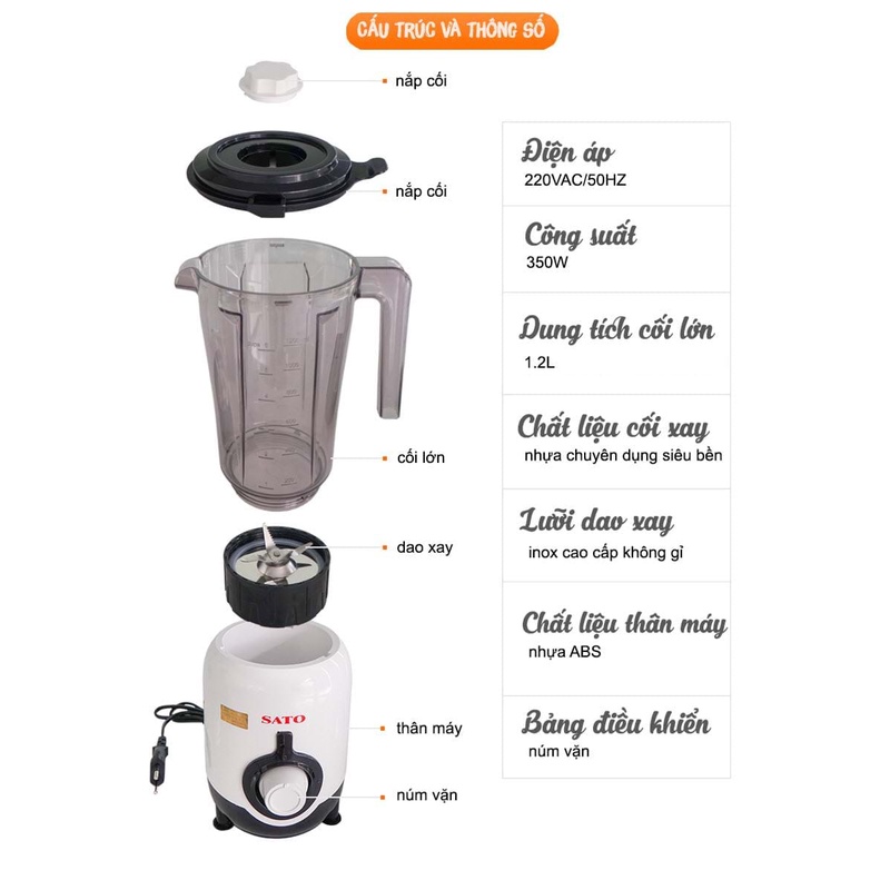 Giới thiệu Máy Xay Sinh Tố đa năng Sato, Bảo hành 12 tháng, Công Nghệ Nhật Bản, Có 02 cối Xay sinh tố và xay đồ khô, Tiện Dụng
