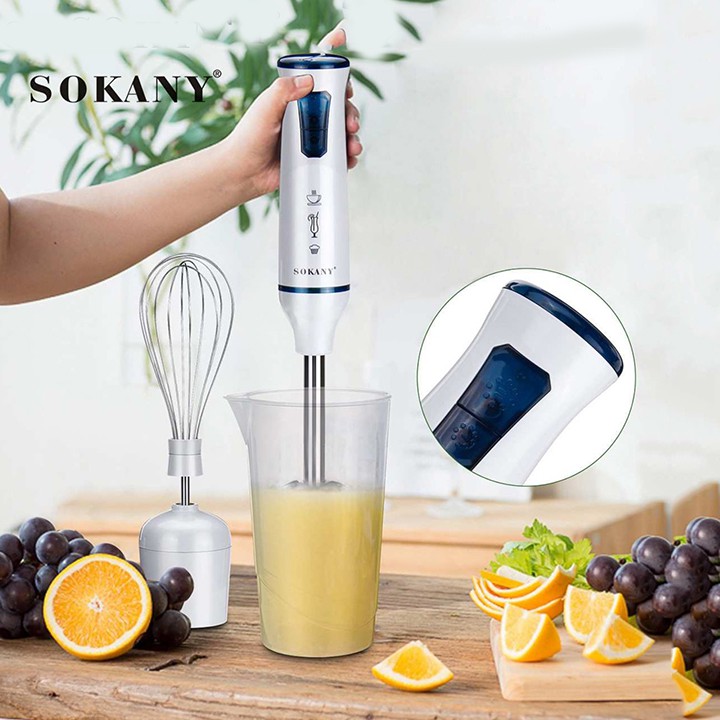+ Máy xay cầm tay Sokany – có rất nhiều chức năng như xay các loại hạt ngũ cốc, đánh trứng, xay sinh tố…