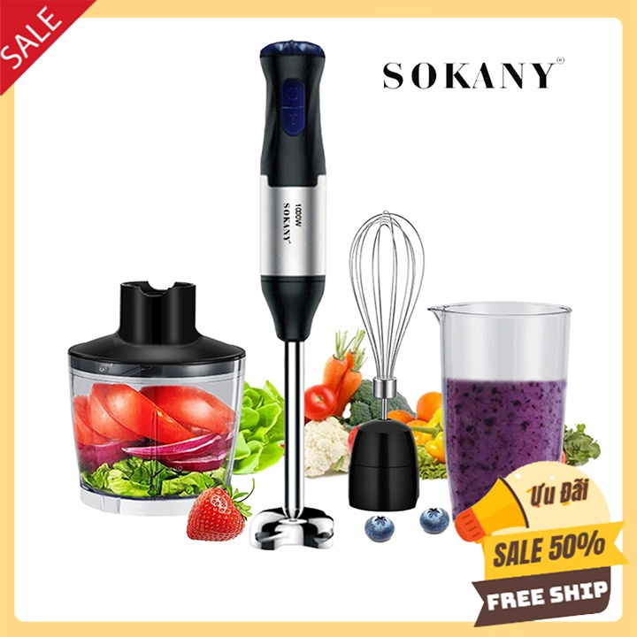 Giới thiệu [Mã 254ELSALE giảm 7% đơn 300K] Máy xay sinh tố đa năng SOKANY 1000W siêu mạnh, xay cầm tay chế biến đồ ăn dặm