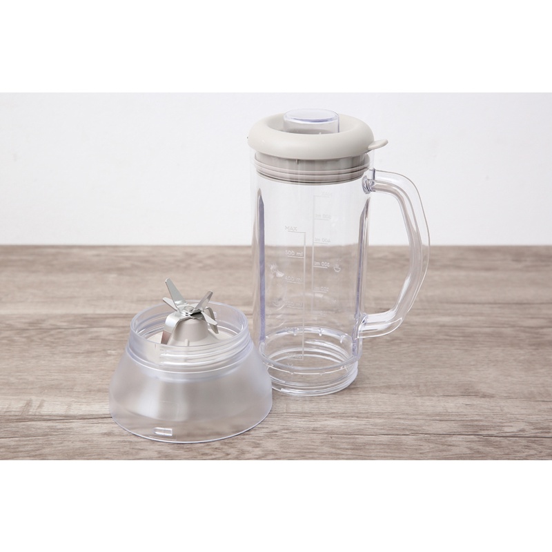 Bộ gồm: 1 cối xay sinh tố lớn dung tích 600ml, 1 cối xay khô dung tích sử dụng 300ml (dung tích tổng 450ml) và 1 bình đựng nước trái cây 500ml có nắp đậy cực tiện dụng.