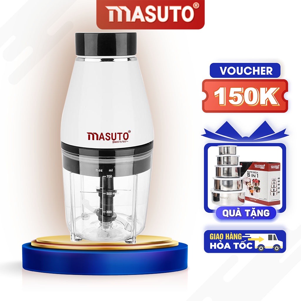 Máy xay sinh tố đa năng Masuto 0,6L say đá hạt siêu nhuyễn mịn chỉ 10s TẶNG HỘP INOX 5IN1