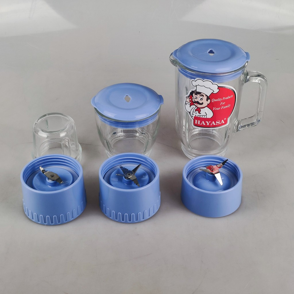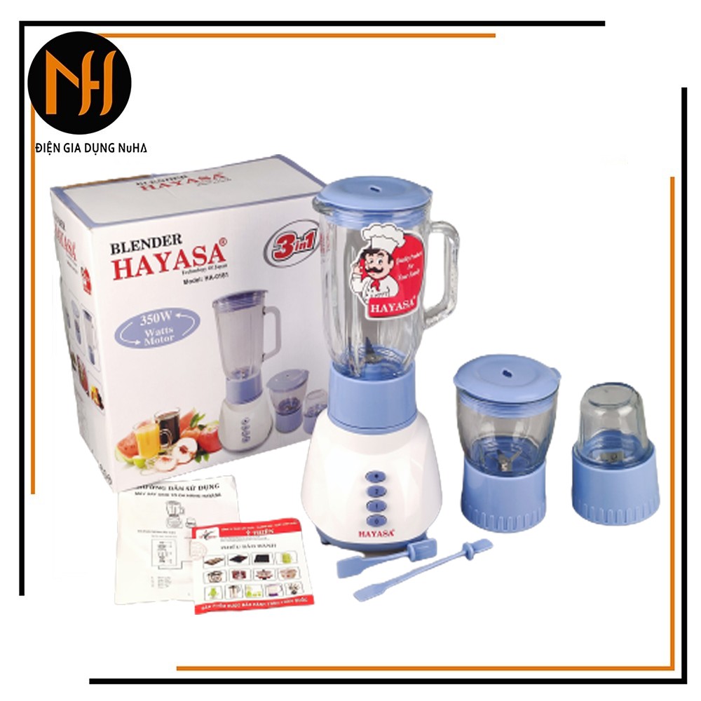 Thiết Bị Điện Gia Dụng > Đồ gia dụng nhà bếp > Máy ép, Xay sinh tố & Máy làm sữa đậu nành || Máy xay sinh tố Gia đình, xay thịt, rau củ đa năng 3 cối Hayasa Ha0801, công suất 350W, xay đa chức năng, bảo hành 12TCòn hàng