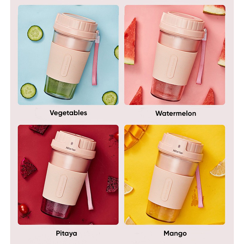 👆 Bộ sản phẩm bao gồm: 1 thân máy, 1 cối xay có nắp làm bình nước mang đi dung tích 300ml, hộp đựng máy, dây sạc