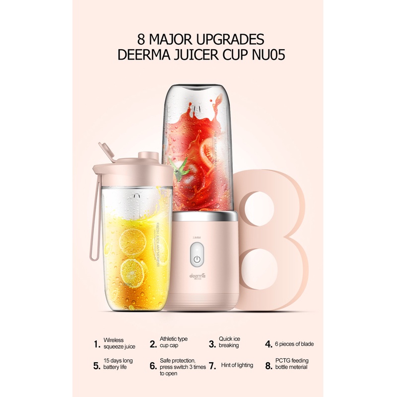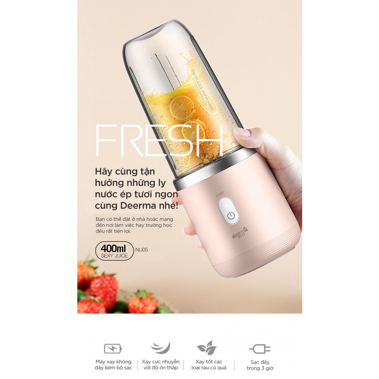 Giới thiệu Máy xay sinh tố hoa quả XIAOMI Deerma DNU05 400ml cho nhà bếp du lịch mini nhỏ gọn tỏi ớt thông minh giá rẻ chính hãng