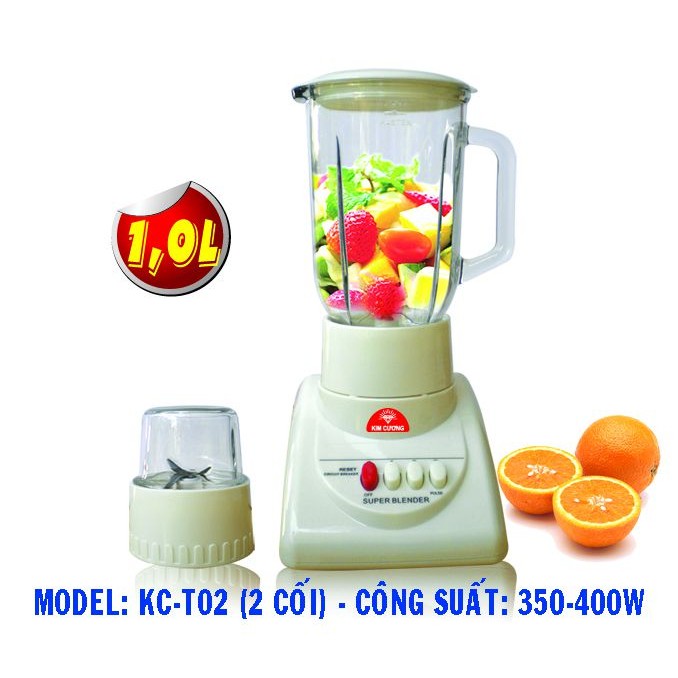 Trong thời tiết oi bức như hiện nay, một ly sinh tố từ trái cây tươi sẽ giúp gia đình giải nhiệt và bổ sung vitamin tốt cho sức khỏe của cả nhà. Máy xay sinh tố 2 cối KC-T02là một trong những sản phẩm của thương hiệu Kim Cương khá nổi tiếng trên thị trường.Máy #xay sinh tố Kim Cương KC-T02 bao gồm một cối lớn, một thân máy và một xay nhỏ phù hợp với các nhu cầu cần dùng của bạn. Hệ thống dao bằng inox có khả năng xay nhuyễn các loại thực phẩm cứng, cối bằng thủy tinh chịu lực tốt.