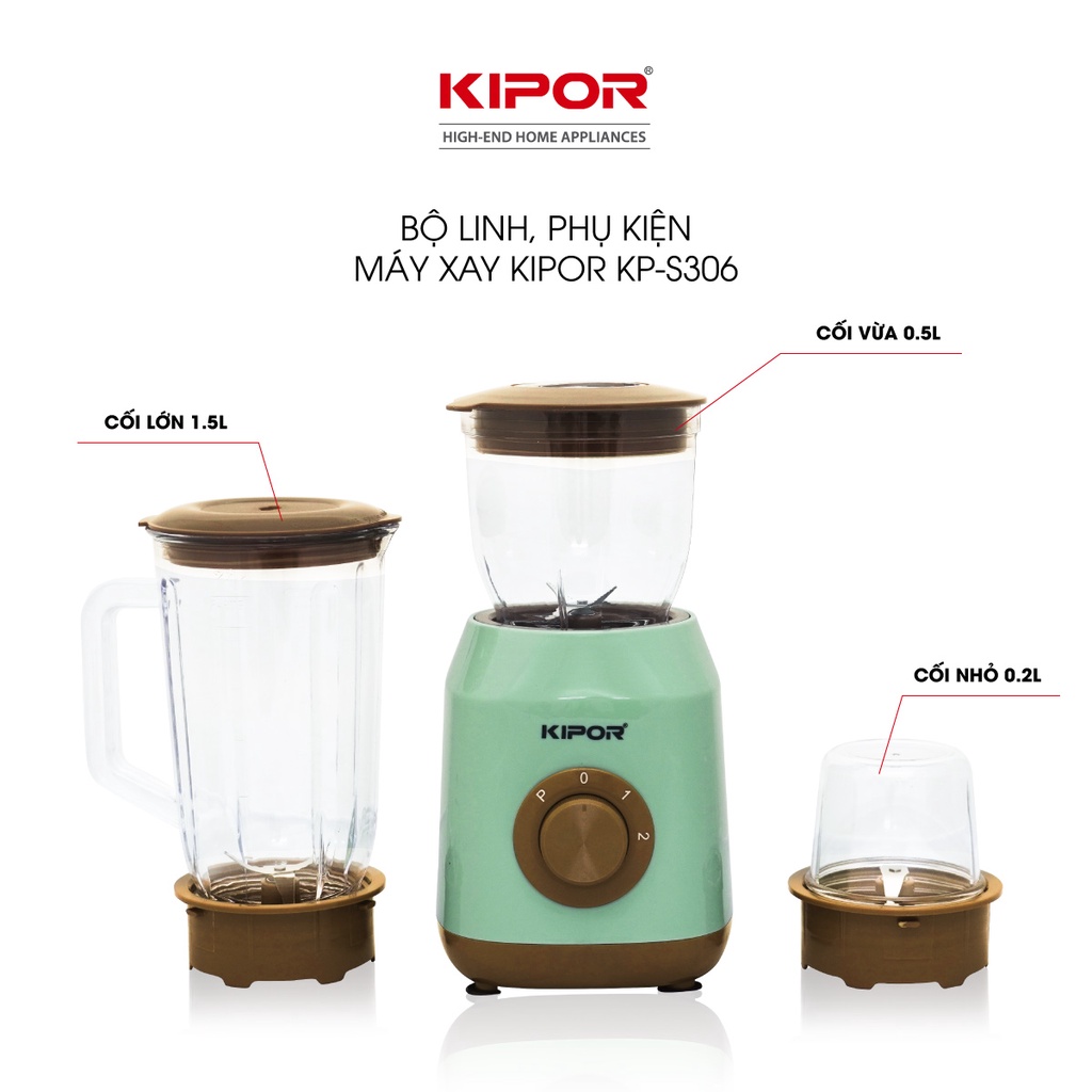 Thiết Bị Điện Gia Dụng > Đồ gia dụng nhà bếp > Máy ép, Xay sinh tố & Máy làm sữa đậu nành || Máy xay sinh tố KIPOR KP-A306 - Tặng kèm 3 cối 0,2L, 0,5L, 1,5L - Tự ngắt chống quá tải - Bảo hành tại nhà 12 thángCòn hàng