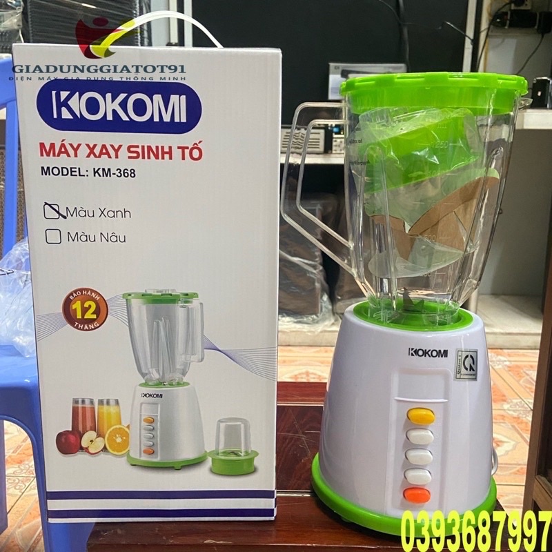 Thiết kế hiện đại, đa chức năngNếu gia đình bạn có trẻ nhỏ, thường xuyên phải xay thực phẩm nấu cháo hay súp cho các bé thì 1 chiếc máy xay đa năng sẽ là sự lựa chọn lý tưởng. Máy xay sinh tố 2 cối kokomi km-368 trang bị 2 cối xay không những có khả năng xay sinh tố, ngũ cốc, mà còn xay được đồ khô rất nhanh chóng và tiện lợi.
