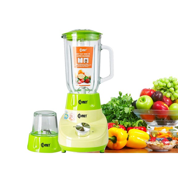 - Máy xay sinh tố COMET - CM9978 bao gồm 3 cối : cối thủy tinh, cối xay khô, cối xay ướt với dung tích khác nhau, giúp bạn xay nghiền nhanh chóng mọi loại thực phẩm như xay sinh tố, xay nghiền thịt hoặc cá, các thực phẩm tươi sống hoặc băm nghiền các loại gia vị, thảo mộc vô cùng hiệu quả.