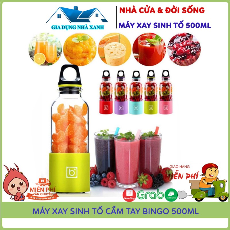 Máy Xay Sinh Tố, Máy Say Sinh Tố Cầm Tay Mini Sạc Pin 4 Lưỡi BINGO JUICER CUP 500Ml, Bảo Hành 12 Tháng, Xay Được Đá