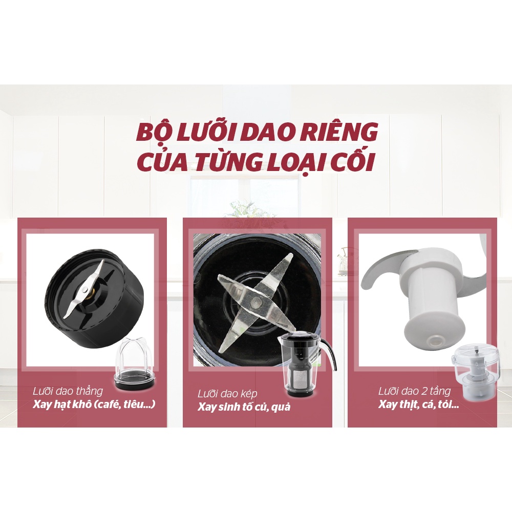 Máy xay sinh tố, Máy xay 3 cối đa năng Sunhouse SHD5322 công suất lớn, 2 tốc độ cực khỏe. Bảo hành toàn quốc