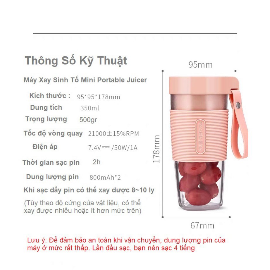 MÁY XAY SINH TỐ MINI DẠNG CỐC UỐNG LIỀN TIỆN DỤNG PORTABLE JUICER CHẠY BẰNG PIN SẠC KHÔNG CẦN ĐIỆNThông tin sản phẩm