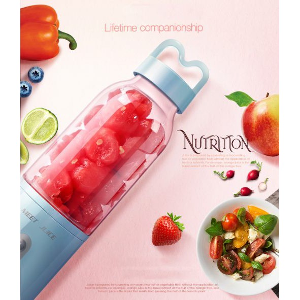 Máy Xay Sinh Tố Máy Xay Cầm Tay Meet Juice Mini Có Sạc Pin Công Suất 150W