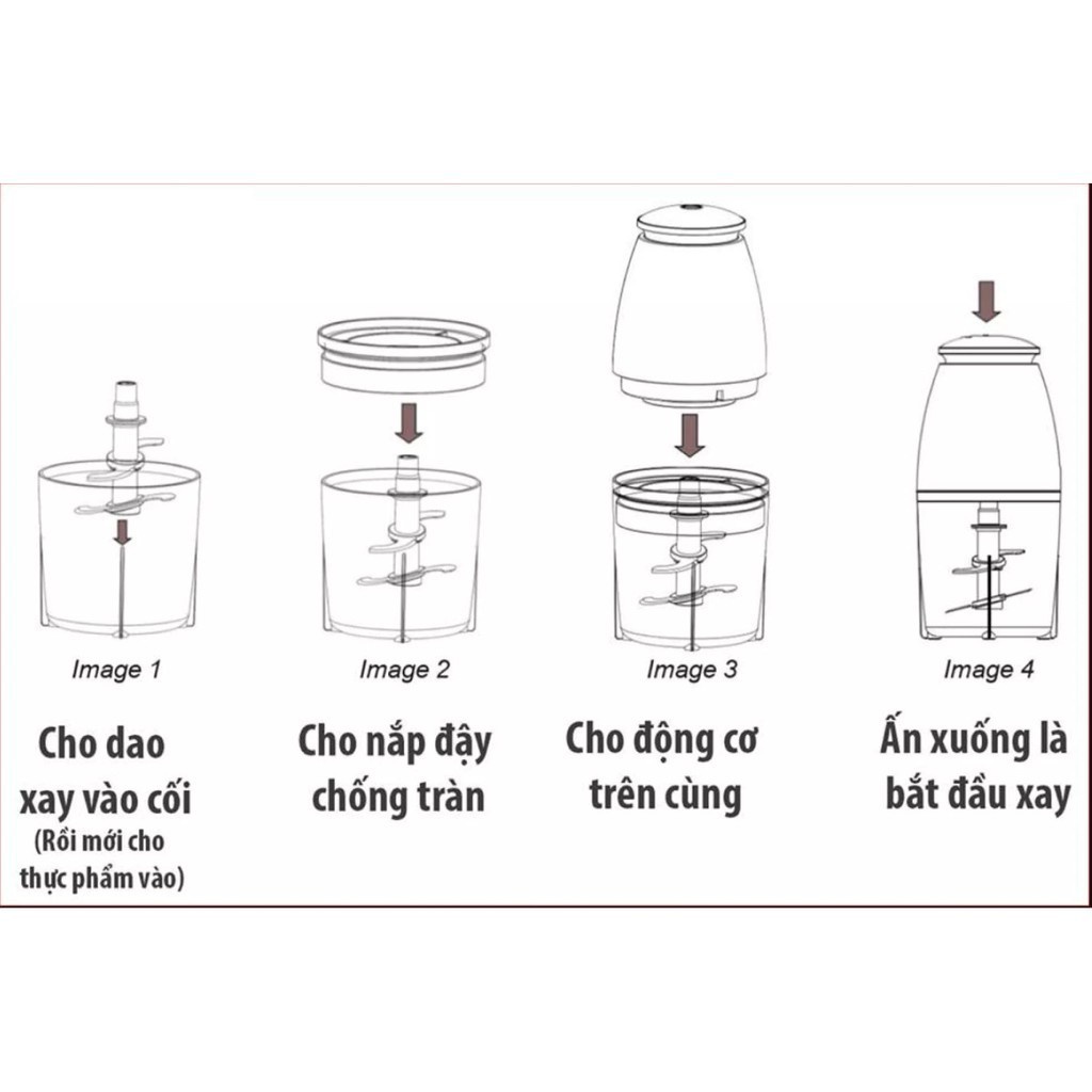 - Gồm 3 phần chính, 1 motor với 2 cấp độ xay, 1 cối chứa thịt xay bằng nhựa, 2 lưỡi dao tác động kép.