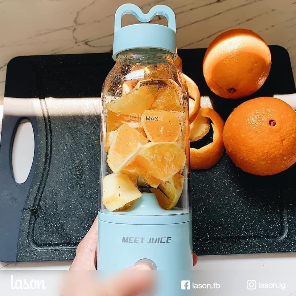 Bé bé, xinh xinh 500ml. Có thể mang theo người như chai nước khoáng. Có hoa quả cái là “action”✔️Dao 4 lưỡi, 3 chiều, không rỉ, dễ dàng xay các loại hoa quả và đá lạnh, và 1 số loại thực phẩm khác ...