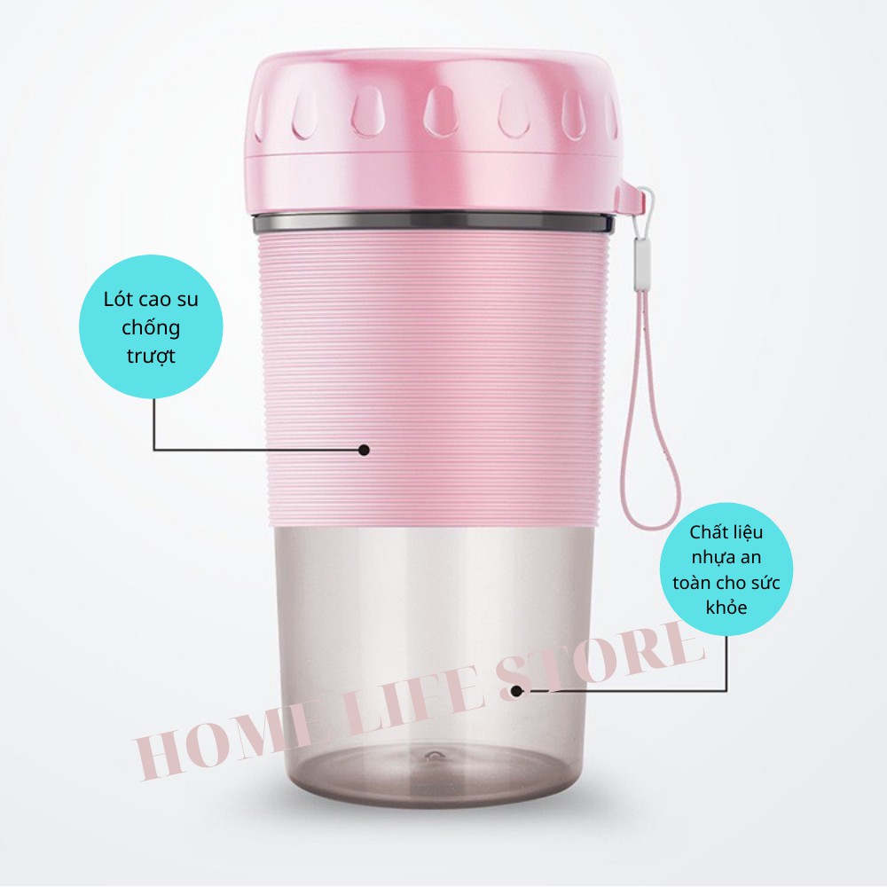 Máy Xay Sinh Tố Mini Cầm Tay, Cốc Xay Sinh Tố Portable Juicer 300ML Tiện Lợi